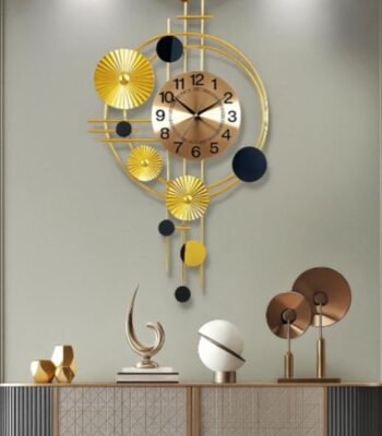 Elevate your space with the Celestial Harmony Wall Clock—an art‑inspired timepiece that blends modern geometry with metallic accents. Its gold‑plated concentric rings, textured sunburst discs and contrasting matte-black orbs create a dynamic focal point while a whisper‑quiet quartz movement keeps time with precision.